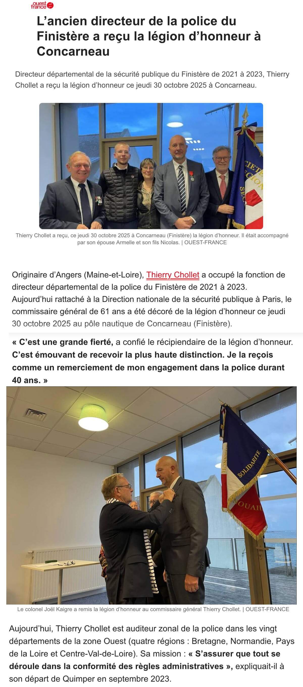 Thierry CHOLLET avec le commissaire adjoint au directeur départemental de la sécurité publique du Finistère  |
