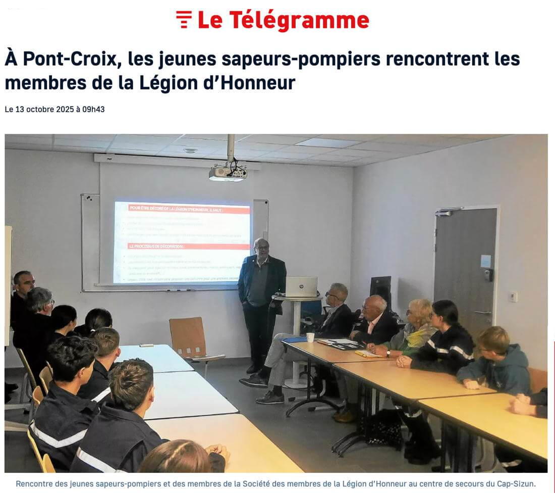 Samedi 11 octobre, les 16 jeunes sapeurs-pompiers du Cap-Sizun ont passé la matinée avec les membres de la SMLH (Société des membres de la Légion d’Honneur) au centre de secours. La rencontre a débuté par une présentation de la SMLH et du partenariat qui a été mis en place cette année. Cela sera suivi d’une table ronde afin que des échanges puissent se faire. Elle permettra notamment aux légionnaires de transmettre leur expérience et d’évoquer avec eux leurs propres défis et doutes passés.